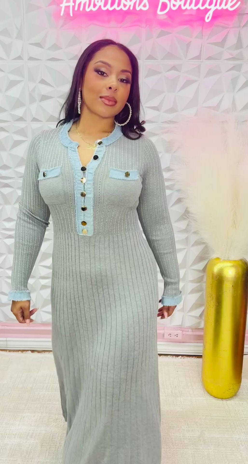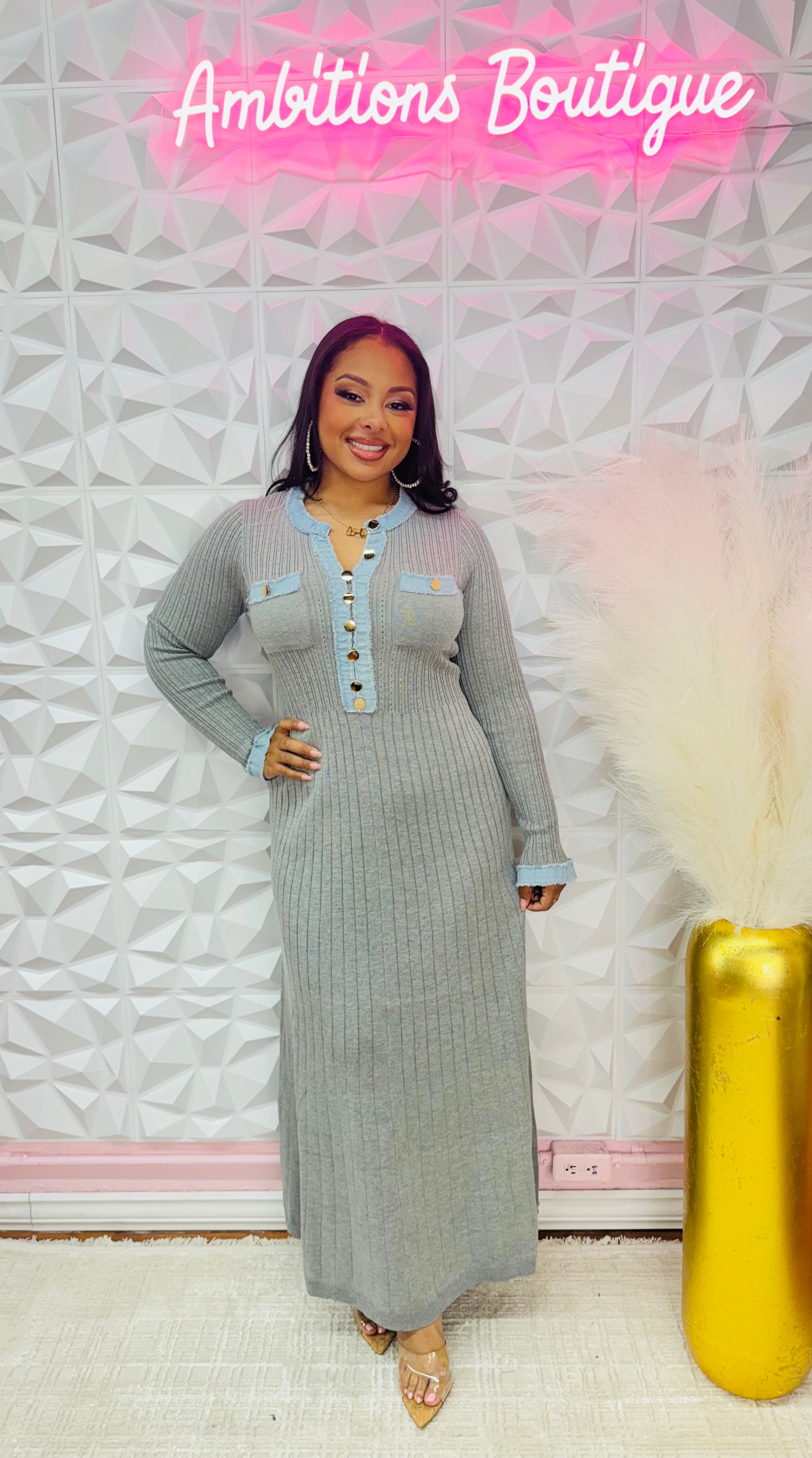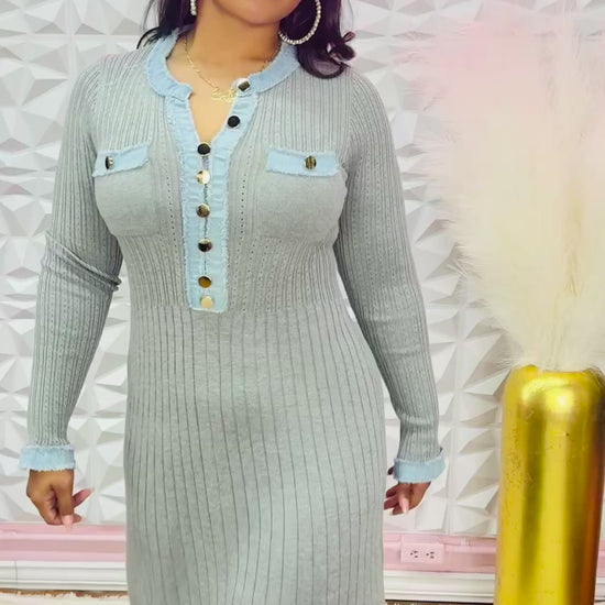 Super cute gray dress with denim details