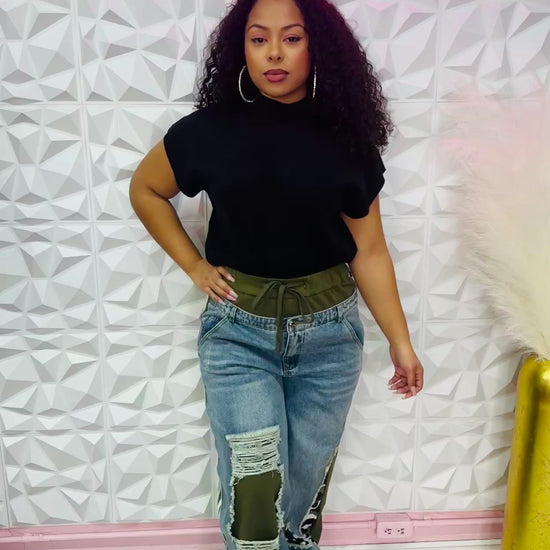 Super cute denim and olive camo joggers
