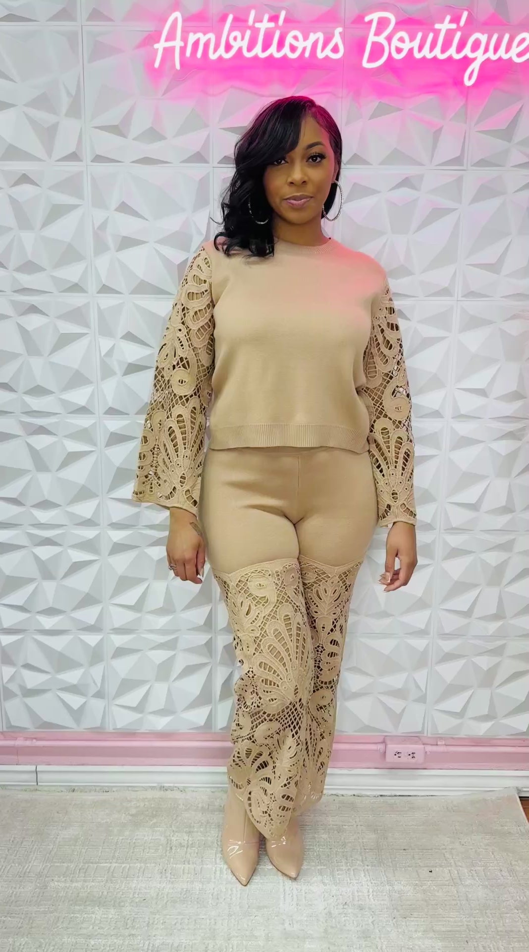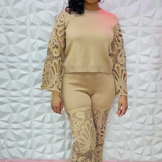 Super cute tan crochet two piece set