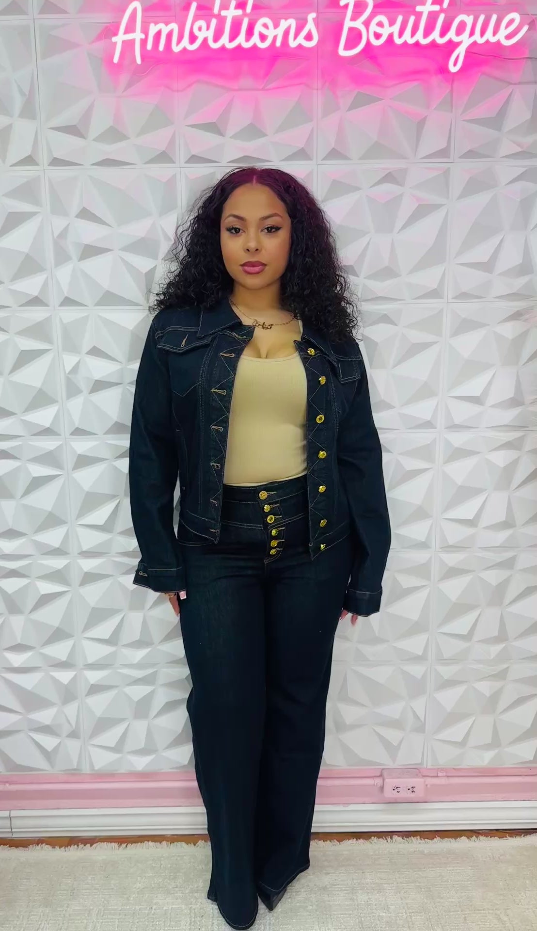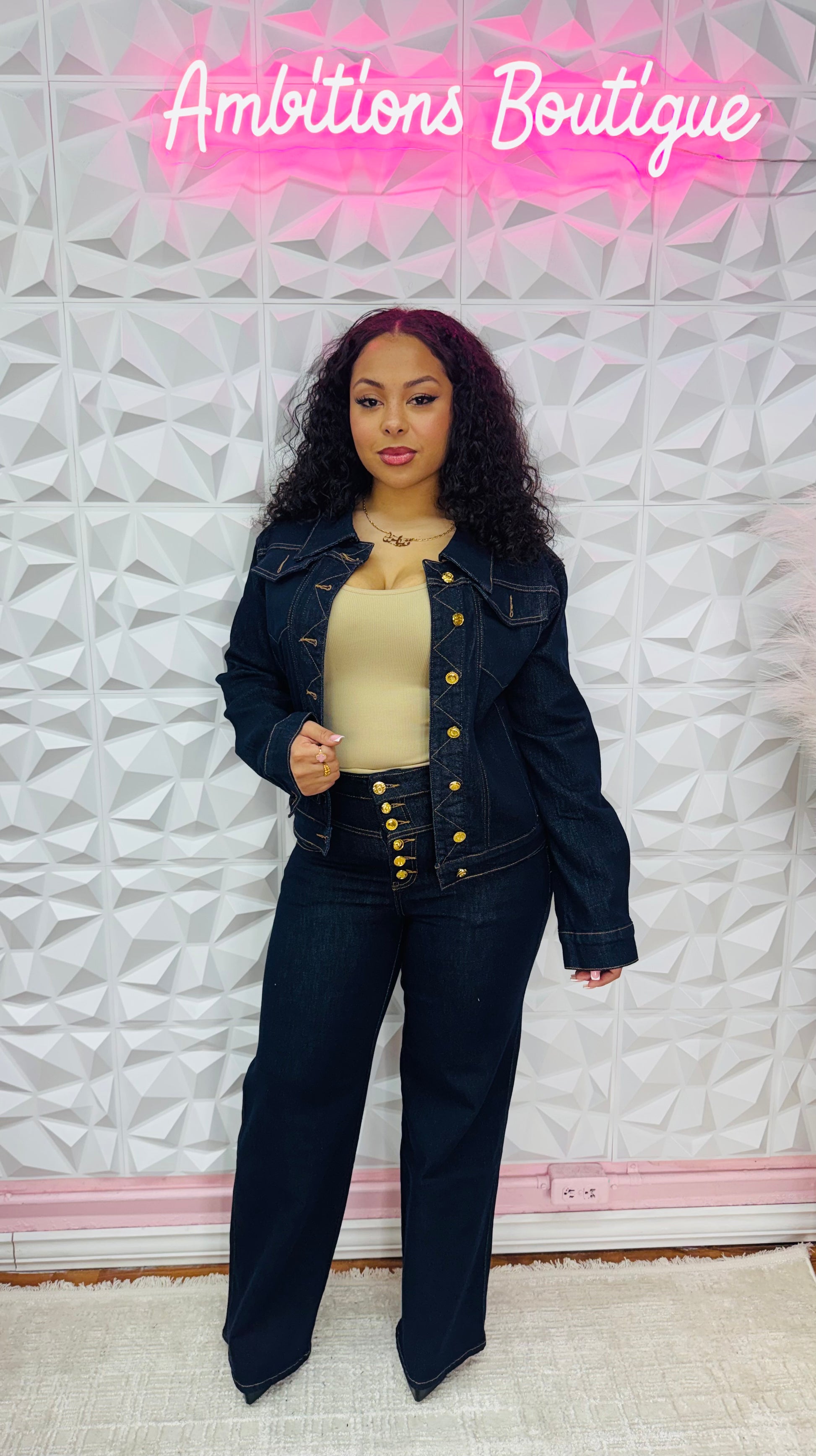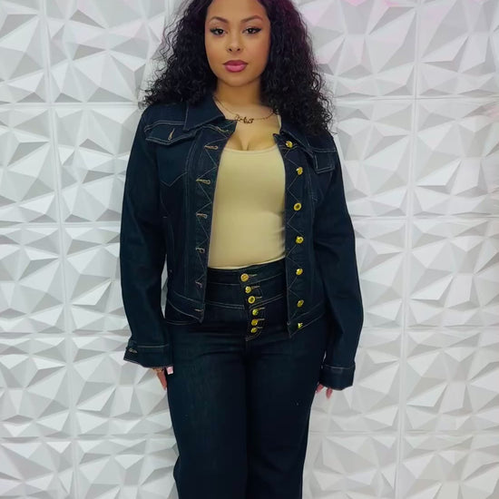 Super cute dark denim jacket and jeans two piece set
