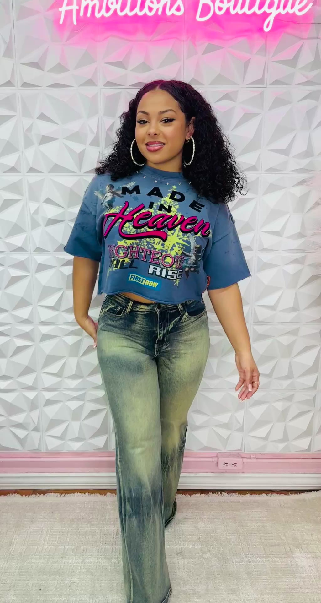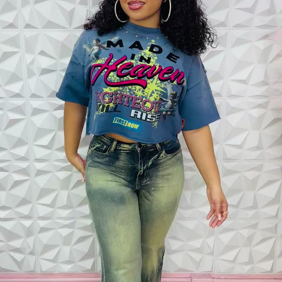 Super cute top with graphic design on front and back with rhinestone collar