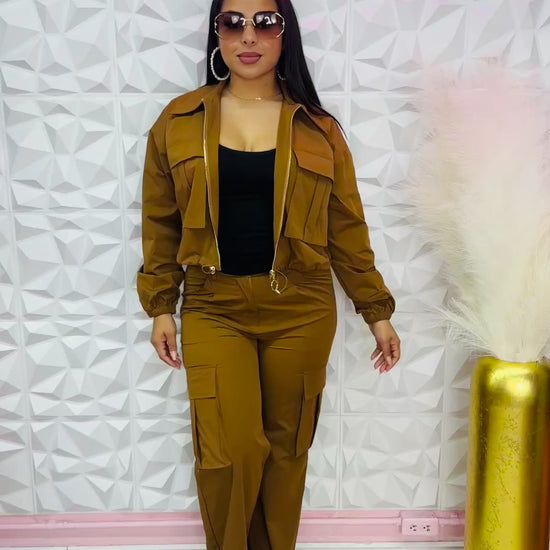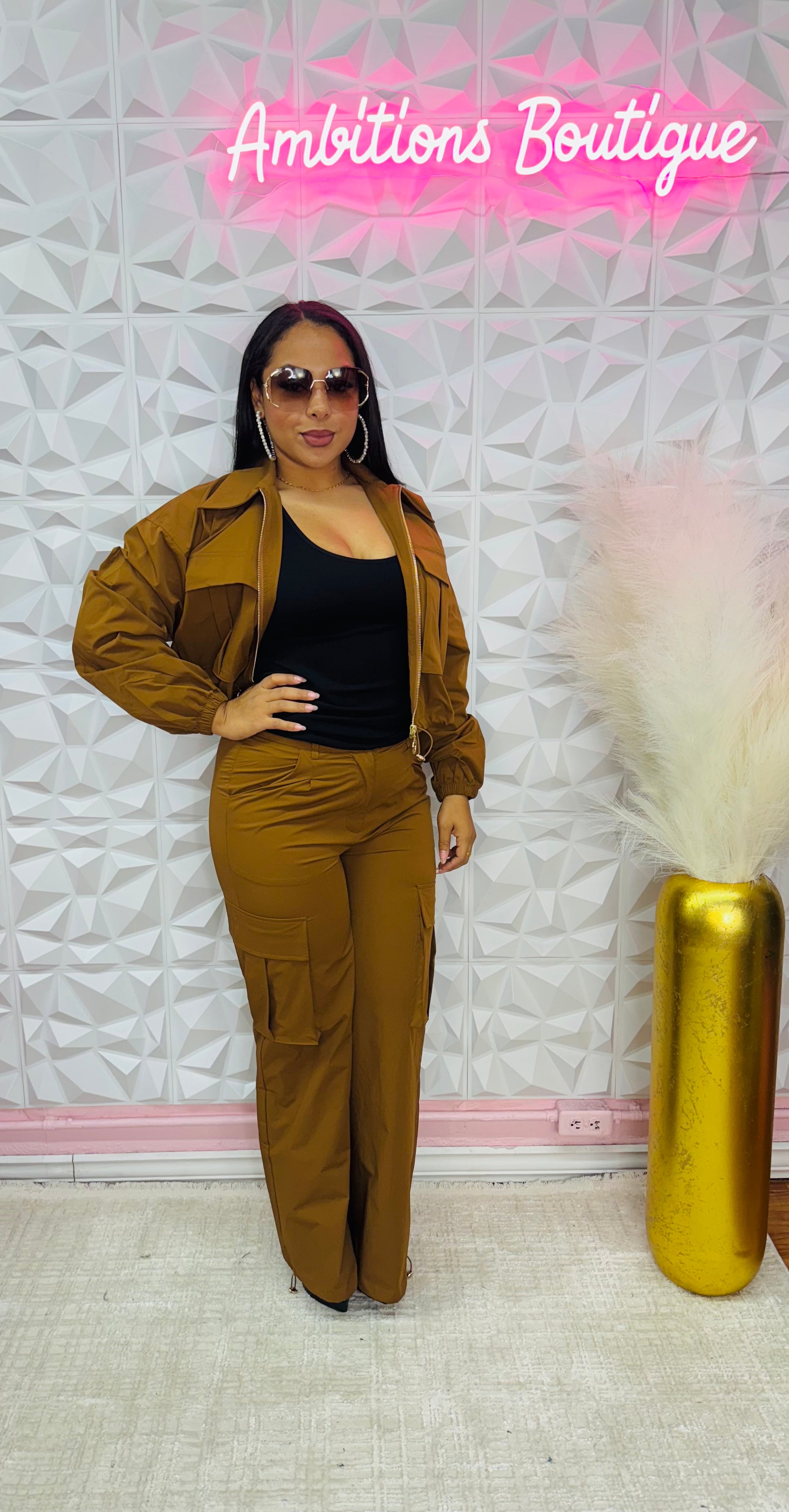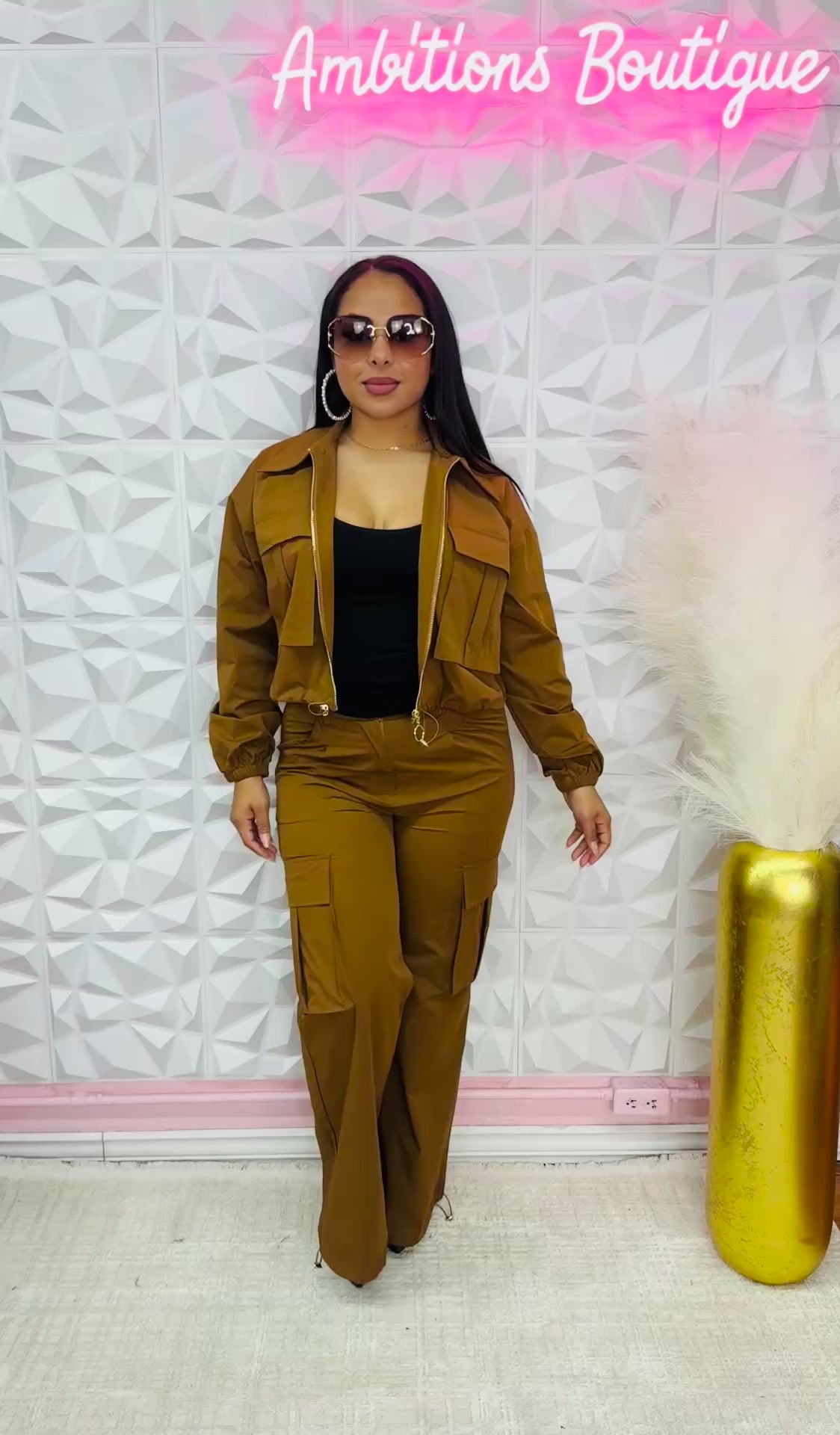 Level up your streetwear game with this chocolate cargo set! Featuring a zip-up jacket with statement pockets and matching drawstring leg cargo pants, this look screams confident and cool. Perfect for brunch, errands, or your next Insta flick — comfy and effortlessly stylish.