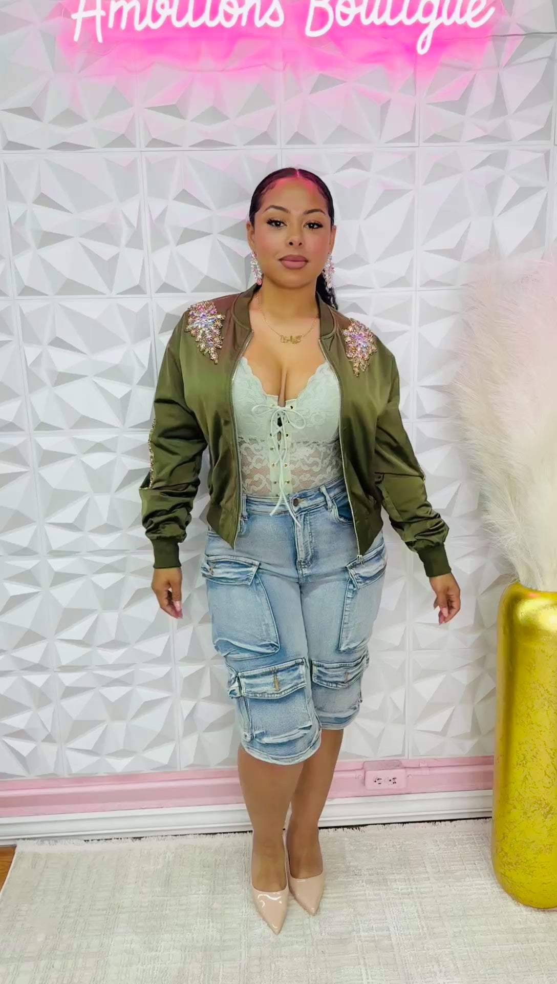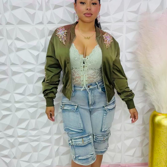 super cute bling detailed bomber jacket