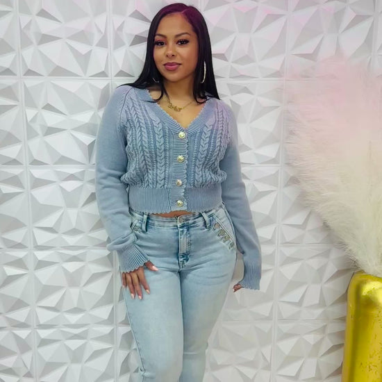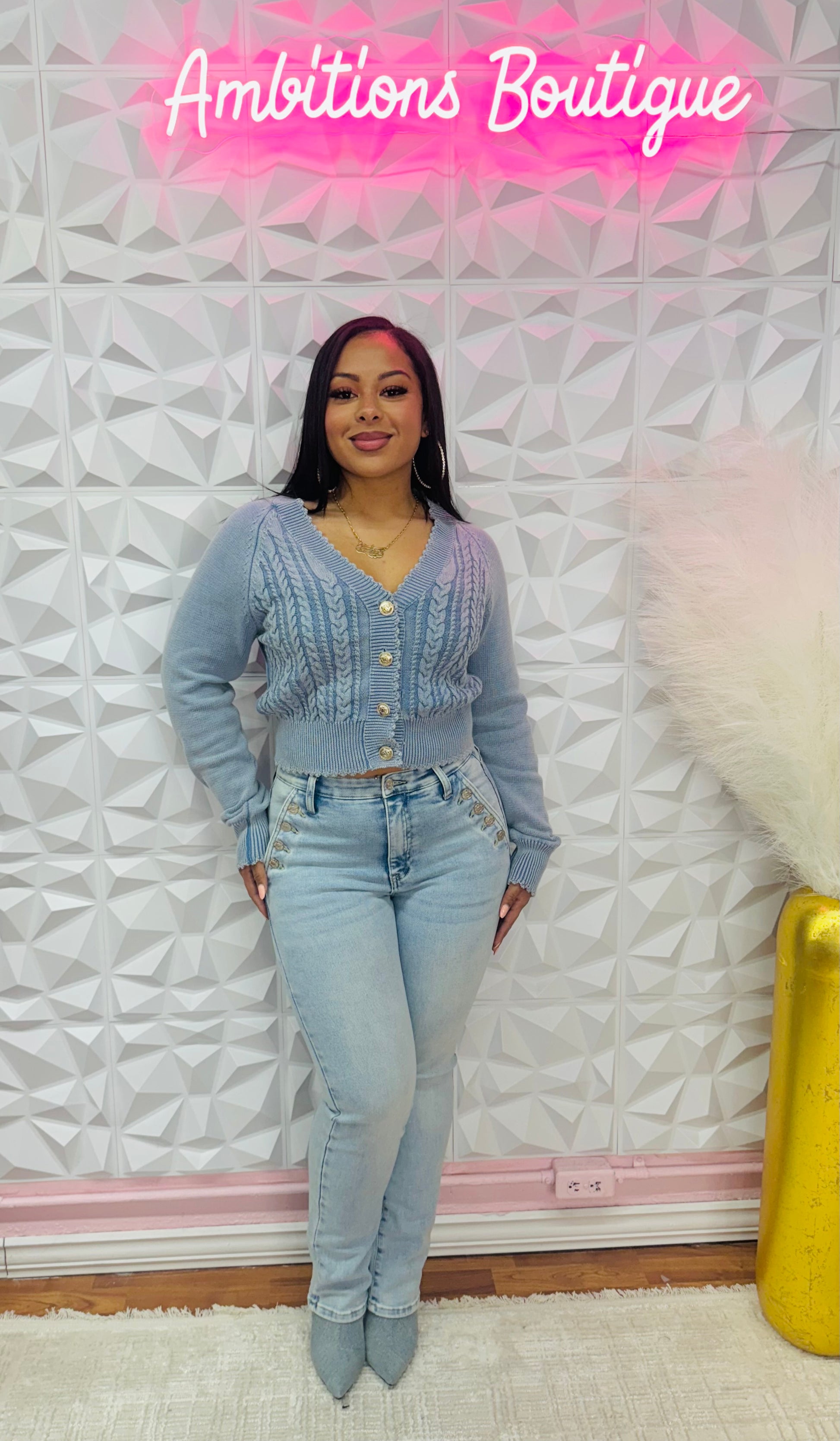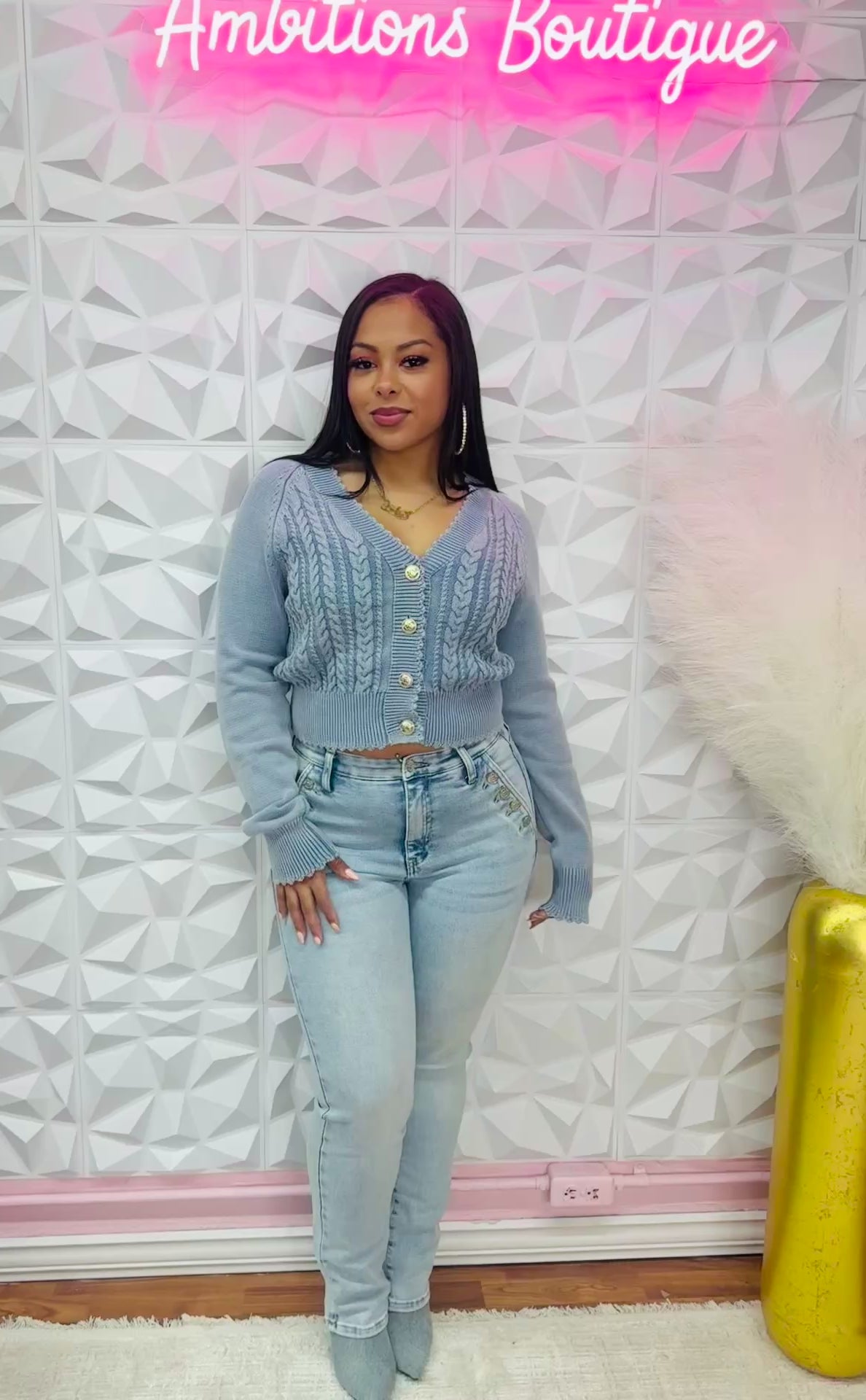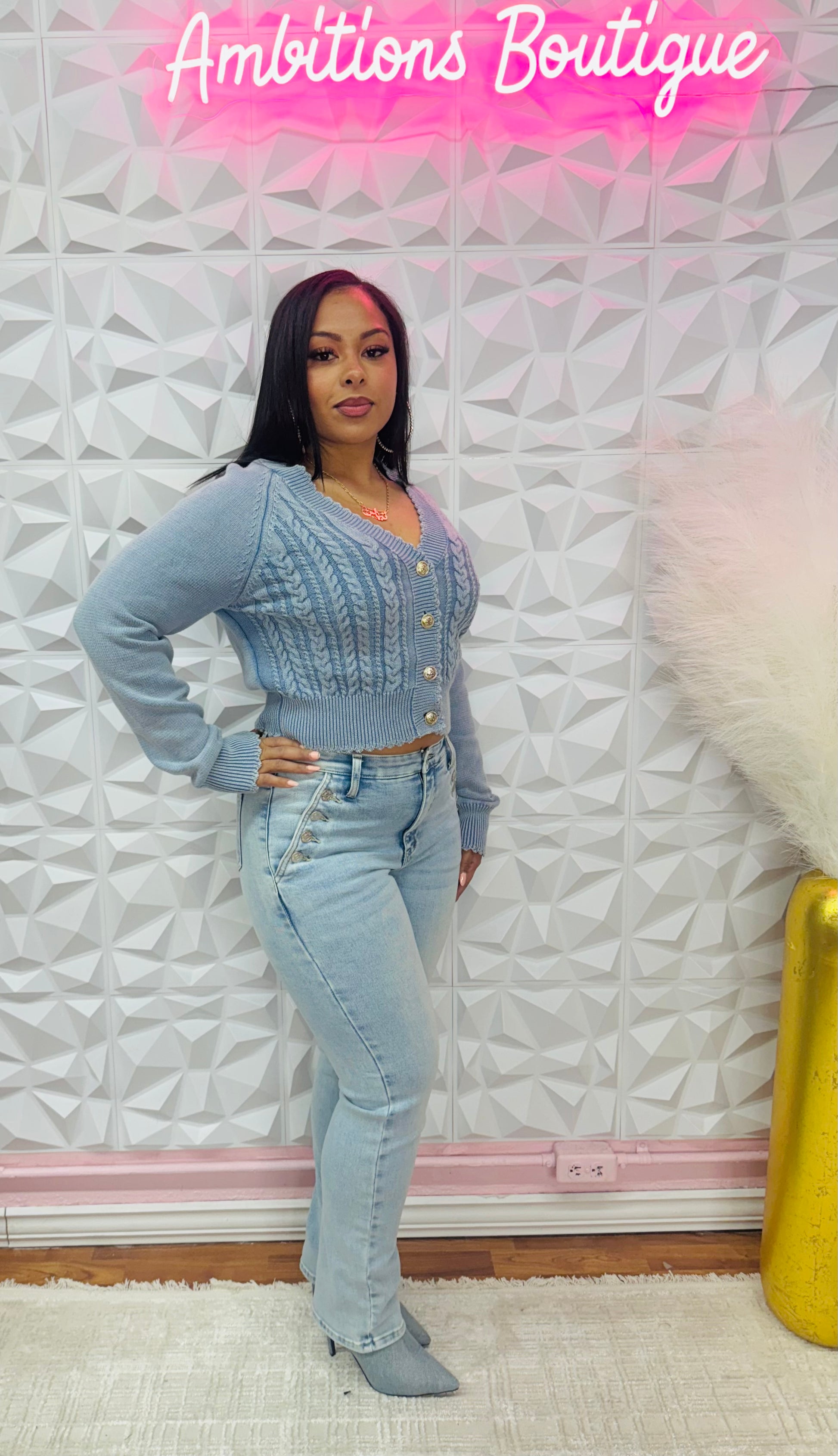 Super cute v neck baby blue cardigan perfect with light wash denim jeans