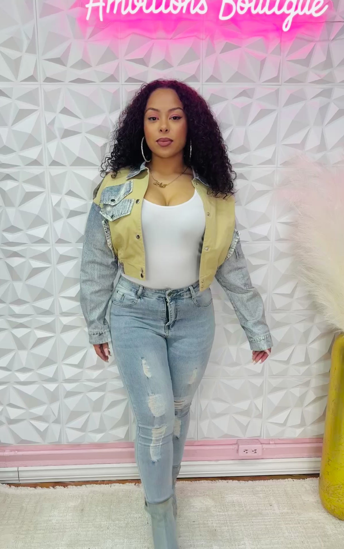 Super cute denim print and khaki jacket